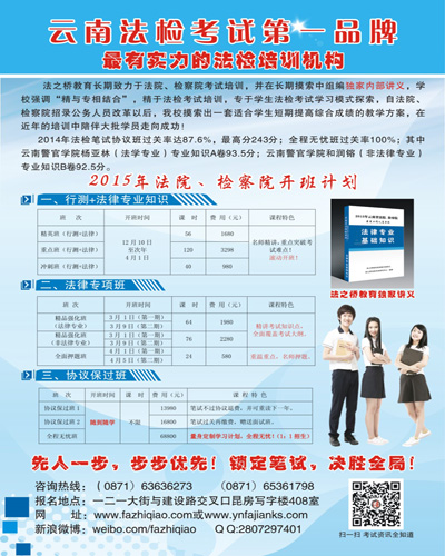 2015年国考即将开始,省考离我们已经不远,立志法检的考生们要开始准备了,法之桥为大家准备最有保障力的法检笔试培训,个性化辅导助你完成法检梦。