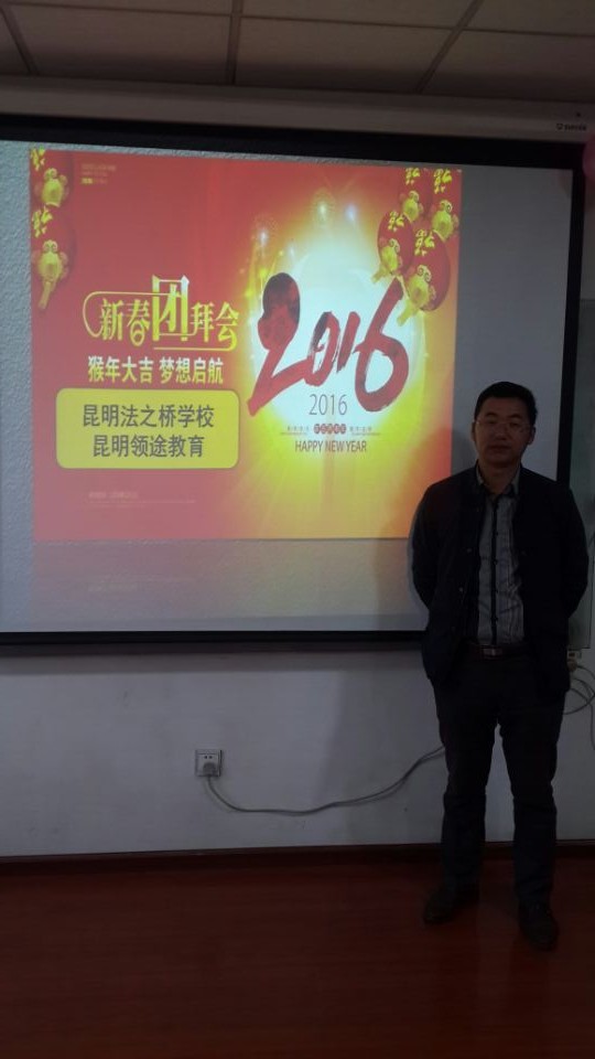 (昆明法之桥学校、昆明领途教育快讯)春风又一重,相聚乐无穷!2016年1月1日中午,一场主题为“新梦想•新旅程”的新年团拜会在昆明法之桥学校、昆明领途教育总部昆房写字楼举行。法之桥学校、领途教育全体员工与50名2016云南公务员考试培训学员一起,辞旧岁,迎新年,共贺元旦佳节。一个小时的迎新活动简洁而别开生面,校长新年祝辞、微信抢红包、学员有奖祝福、智力有奖抢答、新年许愿等活动,将新年的气氛烘托得异常喜庆热烈,让每一位参与者都切身感受到了新春的脚步和气息。