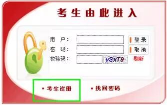 2、出现以下页面,进行考生信息的注册,如图,点击“考生注册”