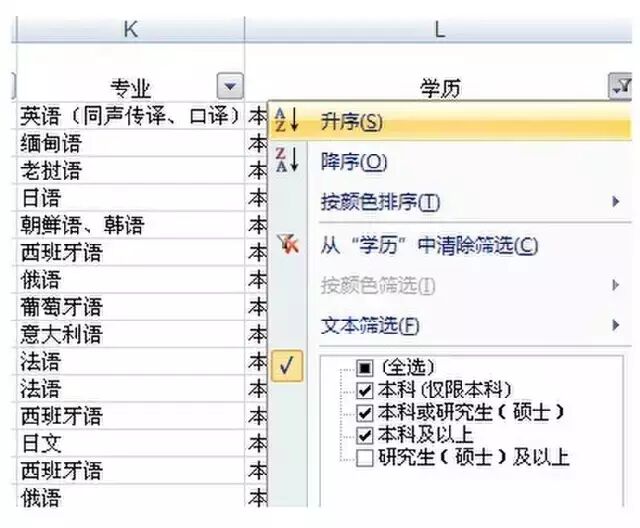 第二步:按照“学历”挑选