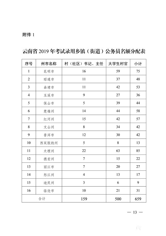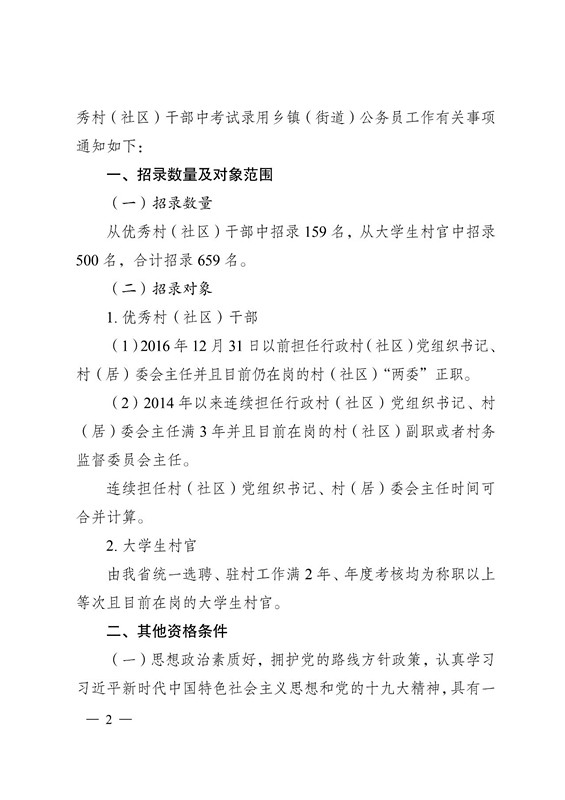 从优秀村(社区)干部中招录 159 名,从大学生村官中招录500 名,合计招录 659 名。