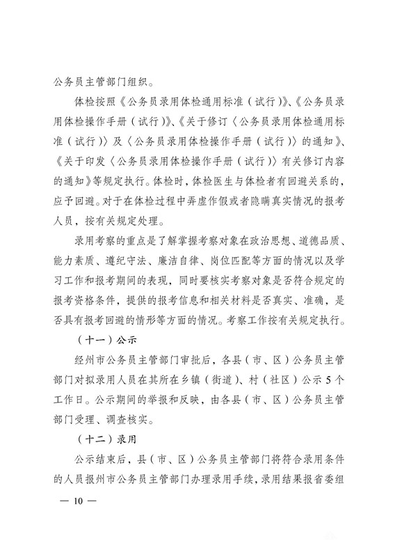 经州市公务员主管部门审批后,各县(市、区)公务员主管部门对拟录用人员在其所在乡镇(街道)、村(社区)公示 5 个工作日。公示期间的举报和反映,由各县(市、区)公务员主管部门受理、调查核实。