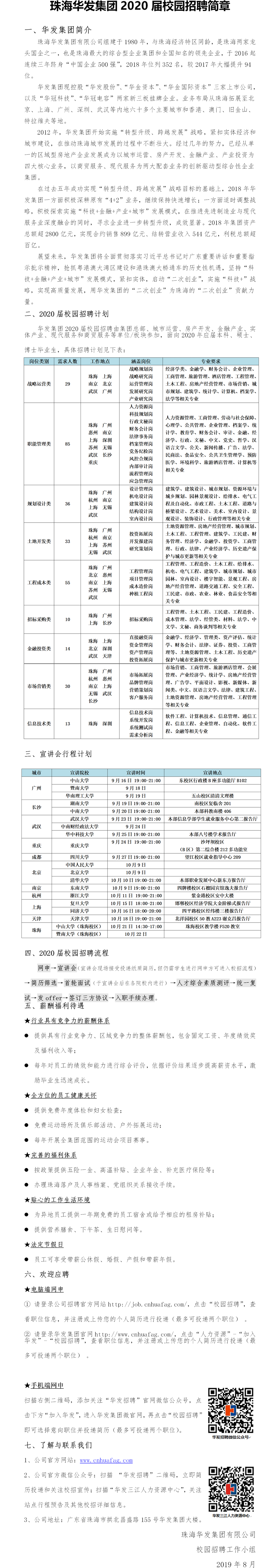 珠海华发集团2020届校园招聘简章