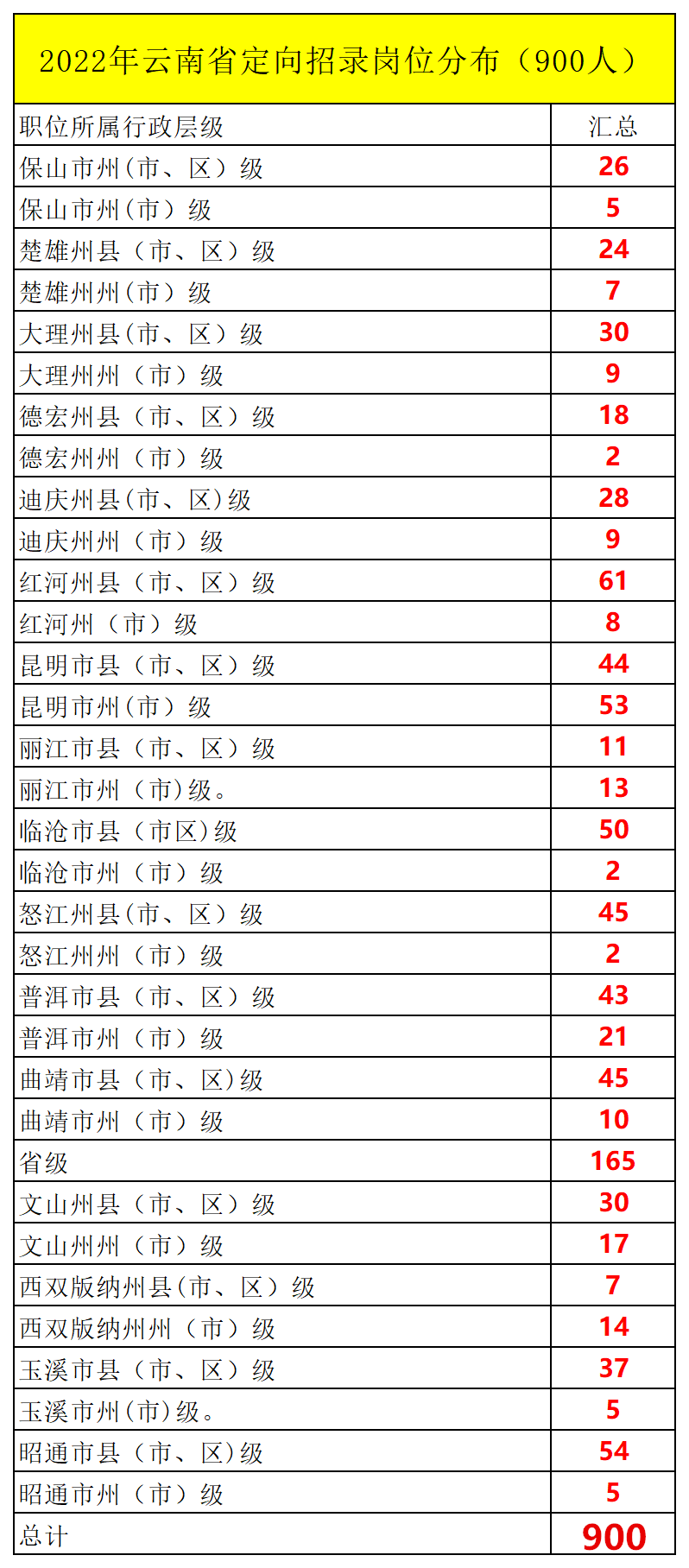 2022年云南省定向招录选调生公告汇总(共900人)